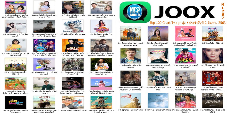 1 CD MP3 :: JOOX Top 100 Chart ไทยลูกทุ่ง • ประจำวันที่ 2 มีนาคม 2563