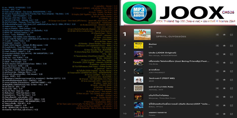 JOOX Thailand Top 100 (ไทย-สากล) • ประจำวันที่ 4 มิถุนายน 2564